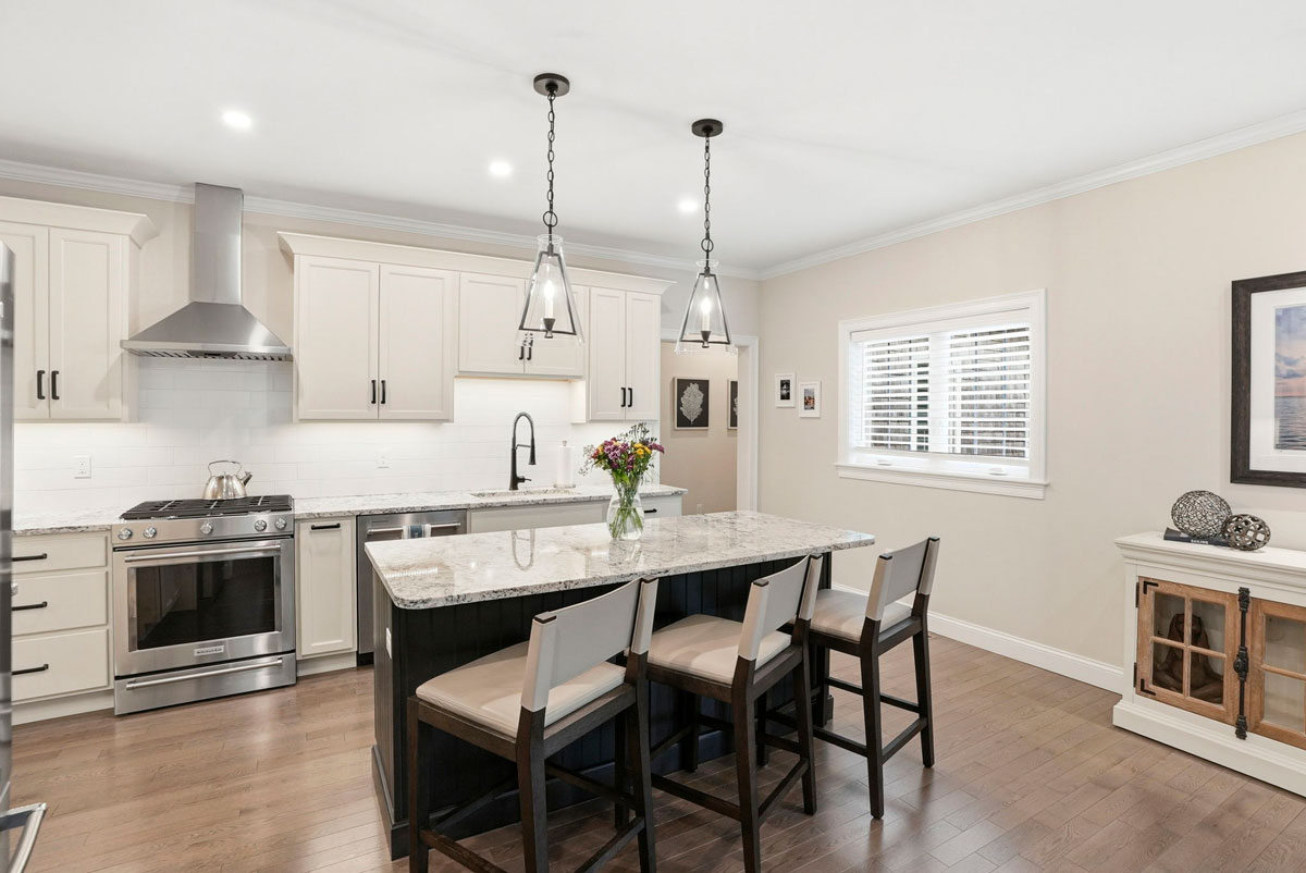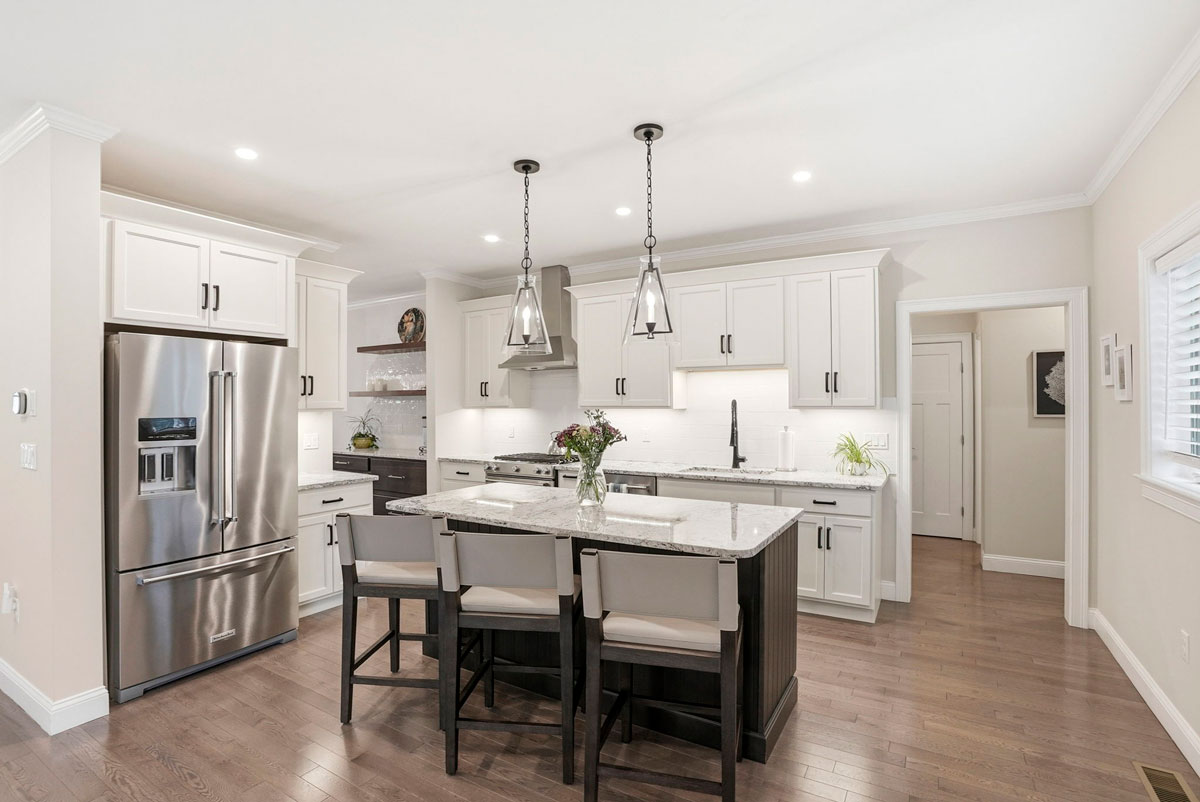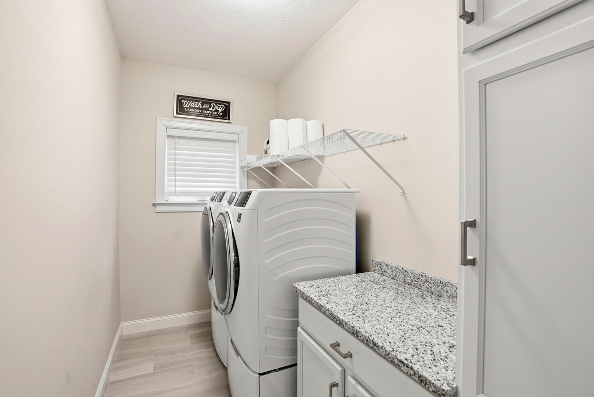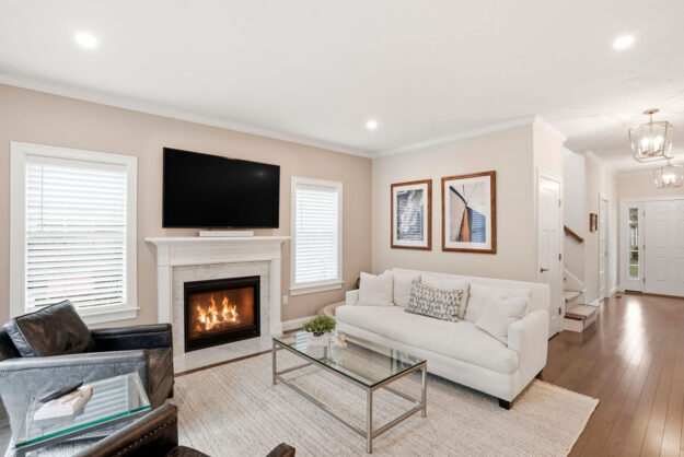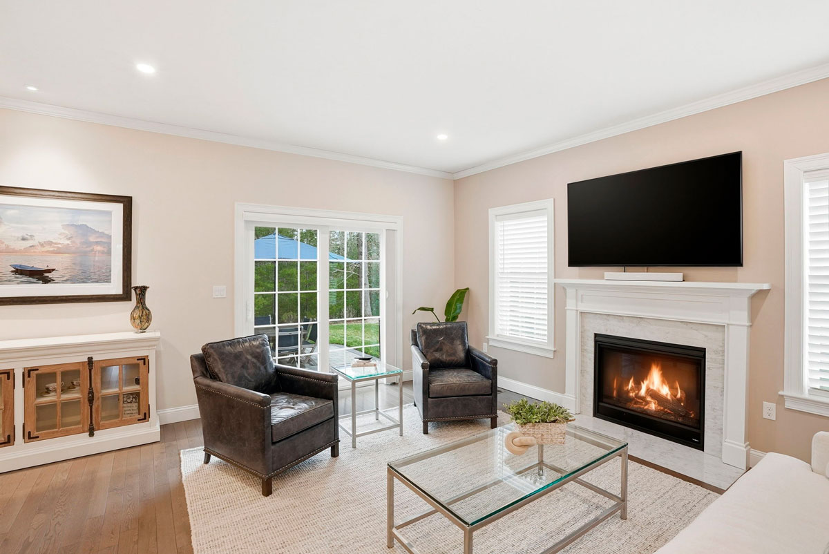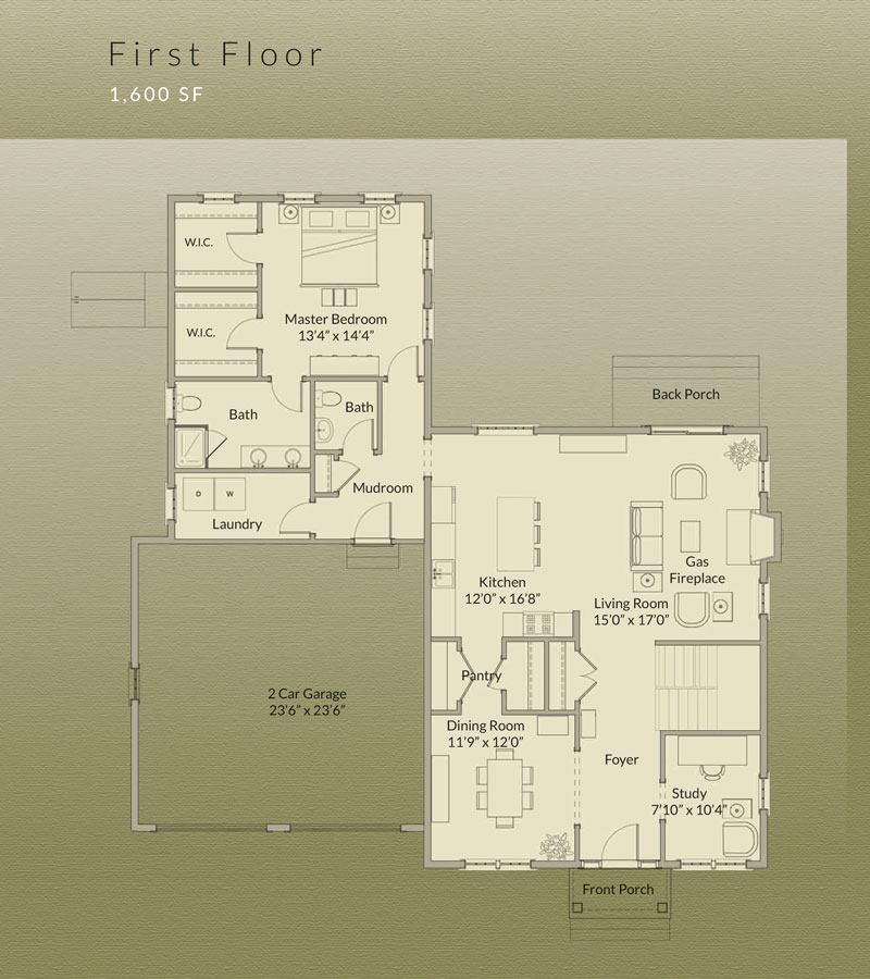 Welcome to The White Pine, where charm and thoughtful design come together. A welcoming farmer’s porch leads into a bright, open-concept living space featuring crown molding, a gas fireplace, and slider access to an expanded hardscaped patio with a cozy outdoor fireplace. The kitchen offers granite countertops, stainless steel appliances, a large center island, and an oversized walk-in pantry with coffee bar connecting to the formal dining room.