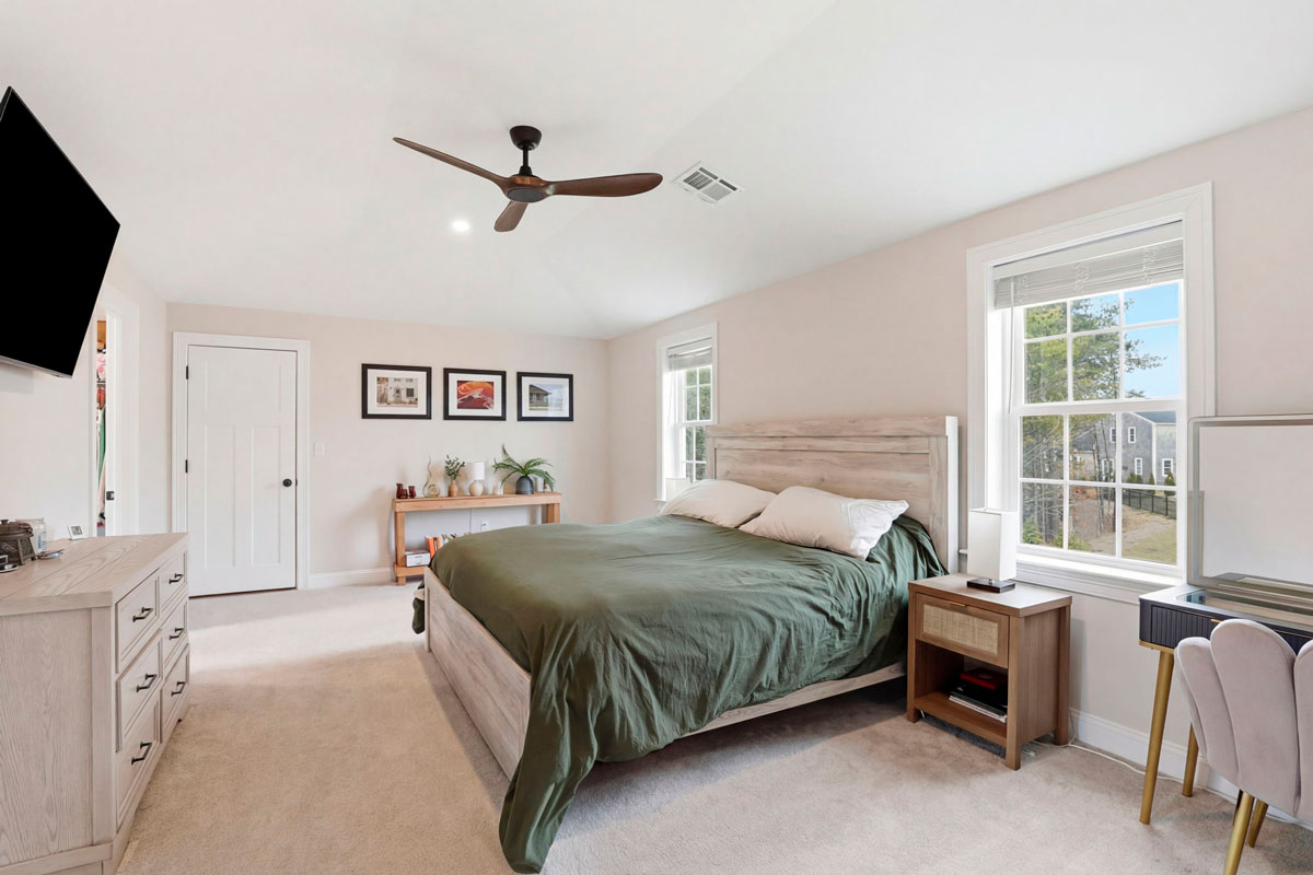 - Second floor primary suite with vaulted ceilings and an oversized walk-in closet
