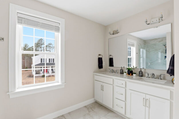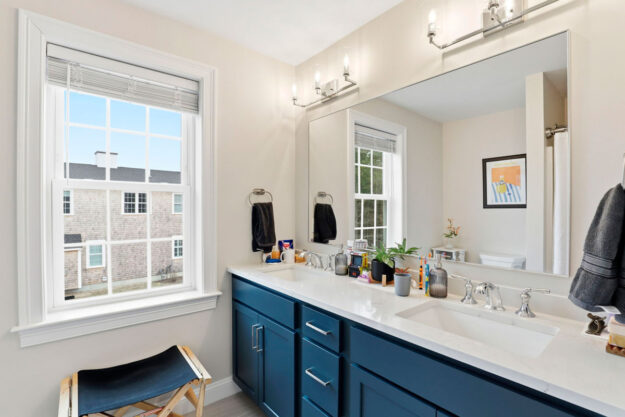 Dual vanities and linen closet