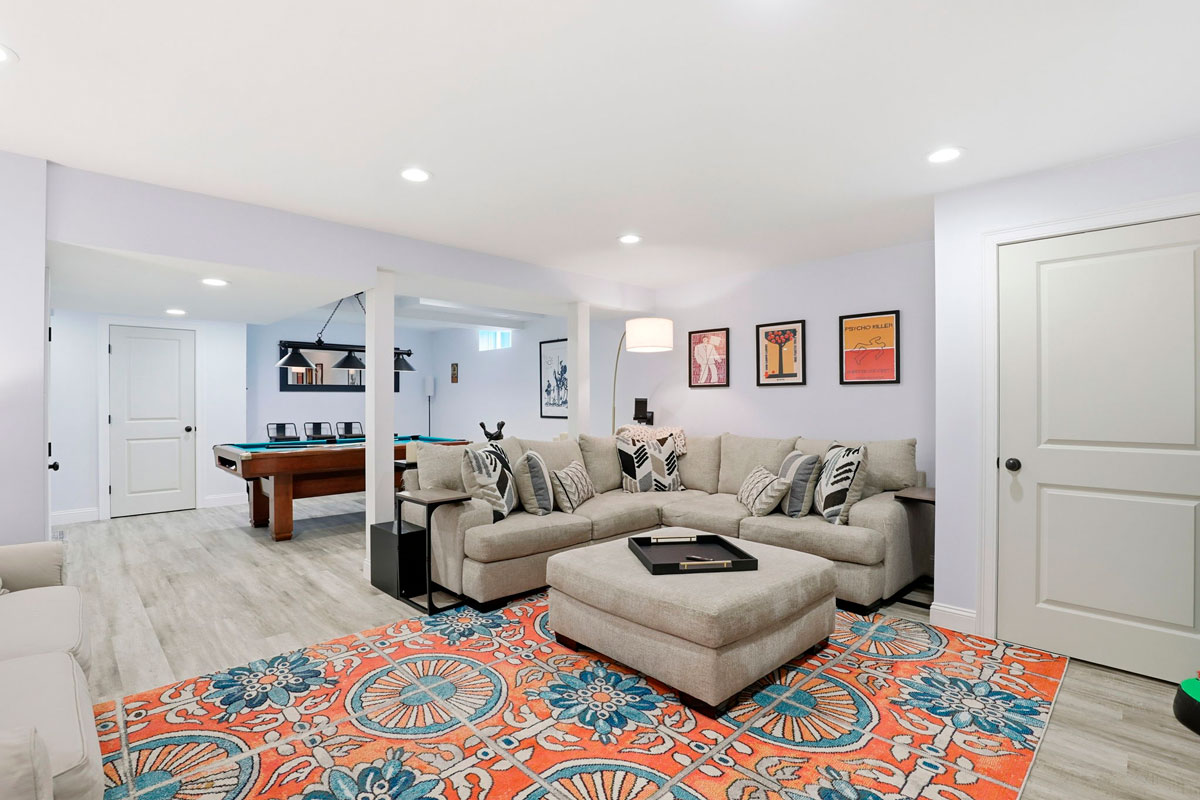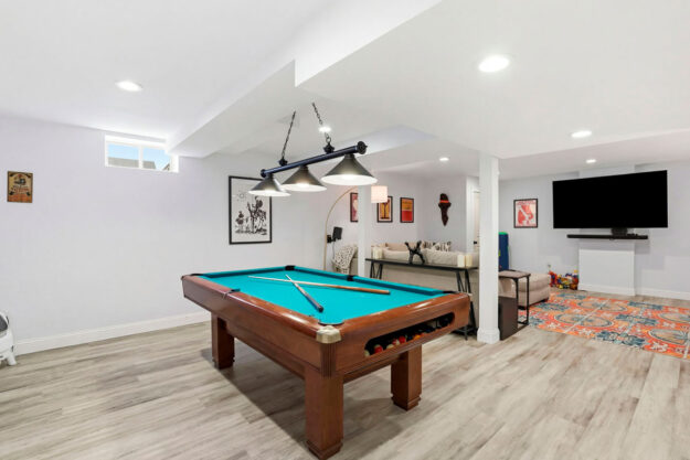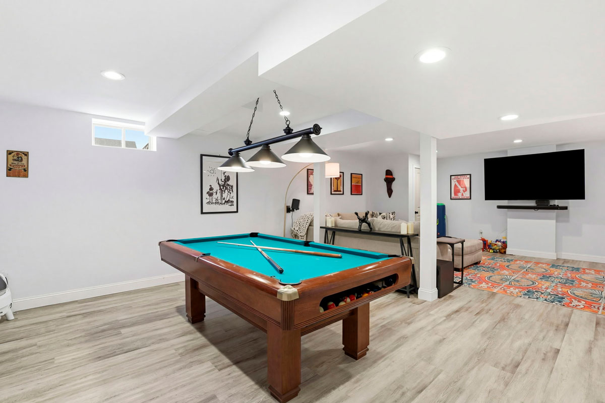 - Spacious finished basement with pool table and built-in beverage bar