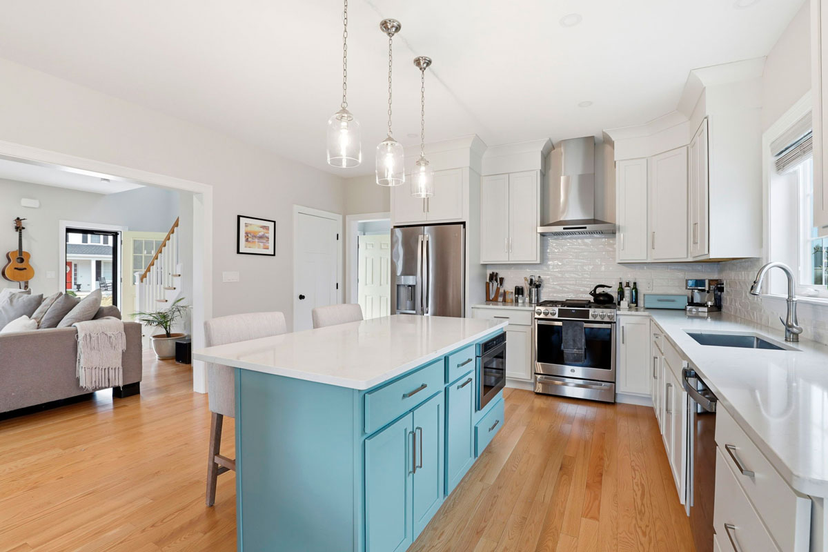 Large island open to dining area