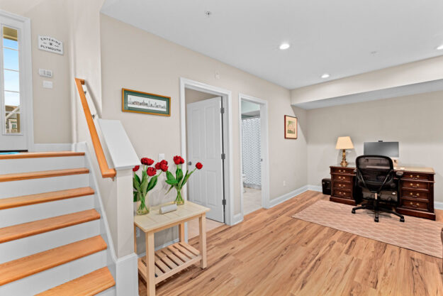 The primary suite offers a peaceful retreat with hardwood flooring, a spacious walk-in closet, and an upgraded en-suite spa-like bath with a tiled, glass-enclosed shower. The finished lower level adds wonderful flexibility, featuring a cozy family room, second bedroom, and a full bath—ideal for guests, a home office, or private retreat. A separate laundry room adds everyday convenience. With a two-car garage and views of a beautifully landscaped community gathering area, this home is perfectly situated near Redbrook’s walking trails, dining and Old Colony YMCA. Welcome Home!