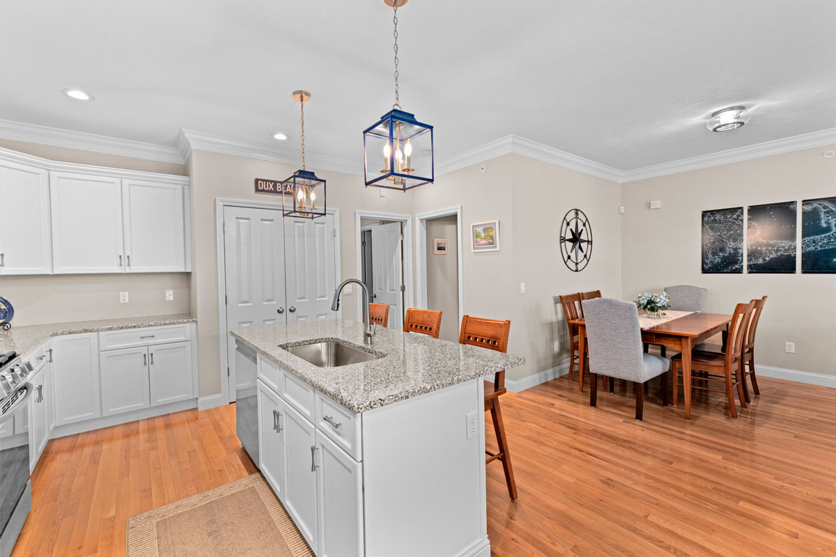 - Hardwood floors kitchen, living, dining and primary bedroom