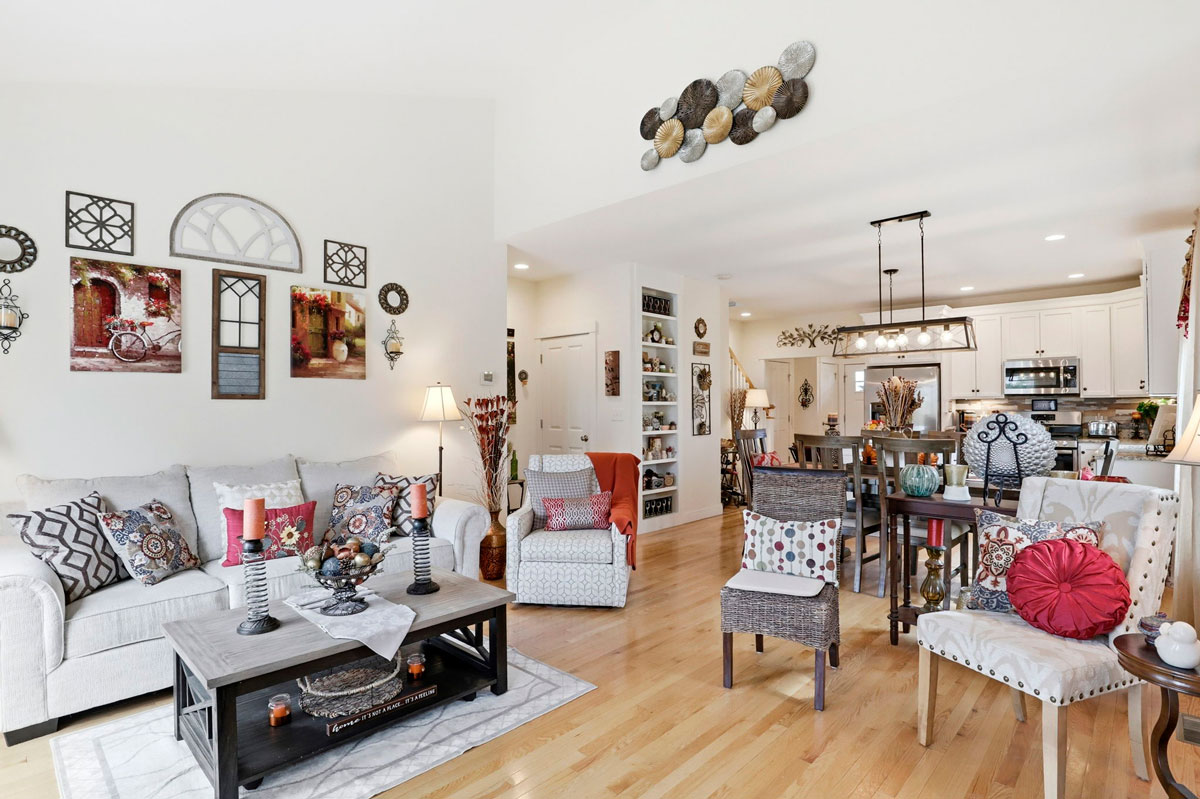 - Open, sun-filled layout with hardwood floors throughout