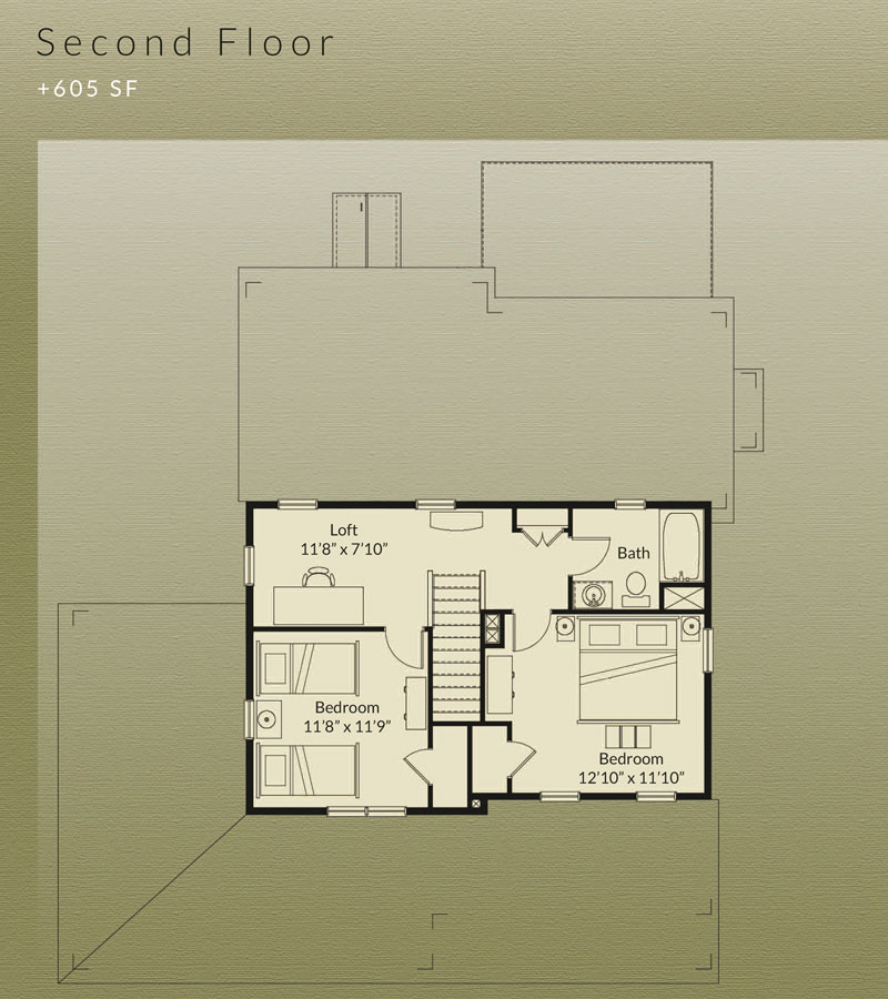 - Second floor with two bedrooms, full bath, and versatile loft