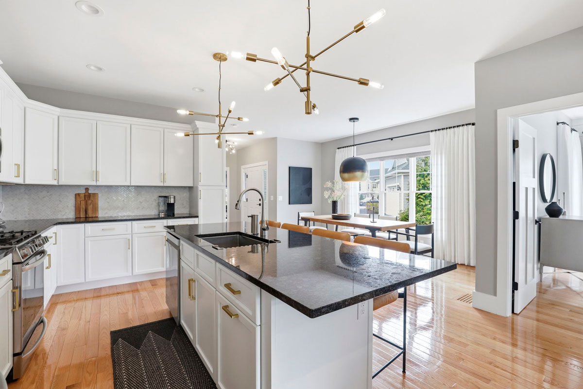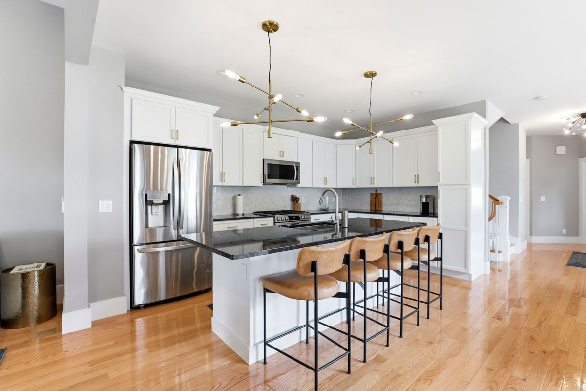 Designer pendant lighting at grand center island
