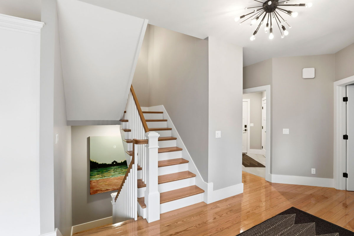 - Main-level powder room