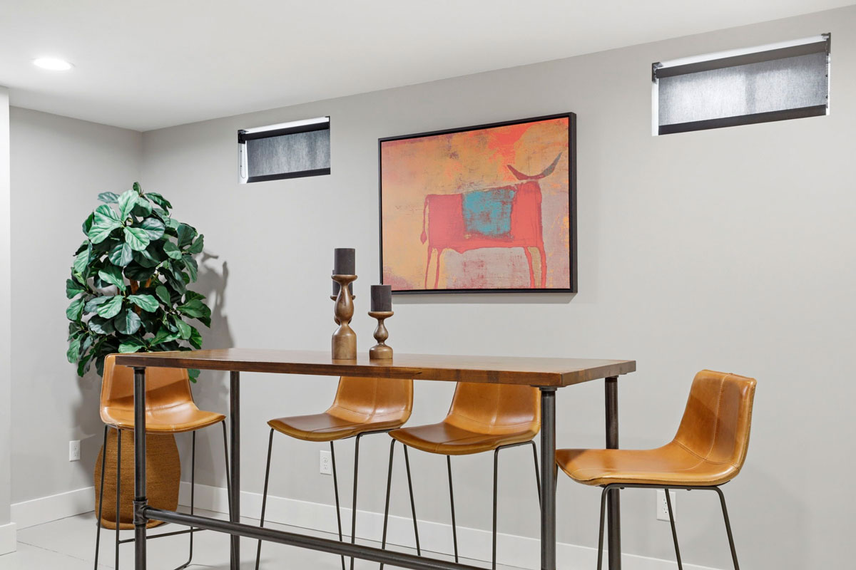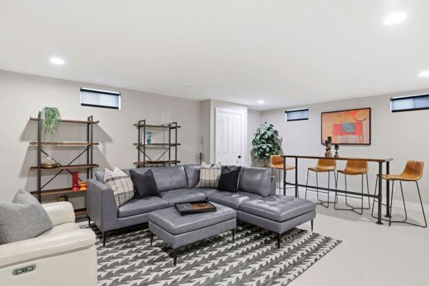 - Finished lower level includes