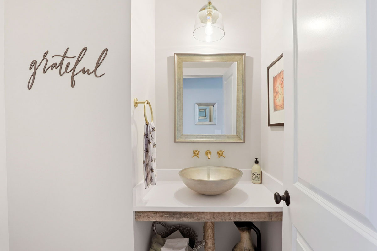 The kitchen is a place of gentle enchantment, with a quartz island, a large pantry hidden behind a sliding barn door, and soft, thoughtful lighting that makes cooking and gathering a true joy. Upstairs, airy bedrooms and a spa-like bath offer peaceful retreats, while the finished lower level provides a versatile space for a home gym, art studio, or movie night. Even the powder room delights with an Italian glass vessel sink paired with refined brass wall-mounted fixtures. Every corner of this home whispers bespoke magic—a storybook sanctuary where sunlight, comfort, and the serenity of nature come together in perfect harmony. Welcome Home!