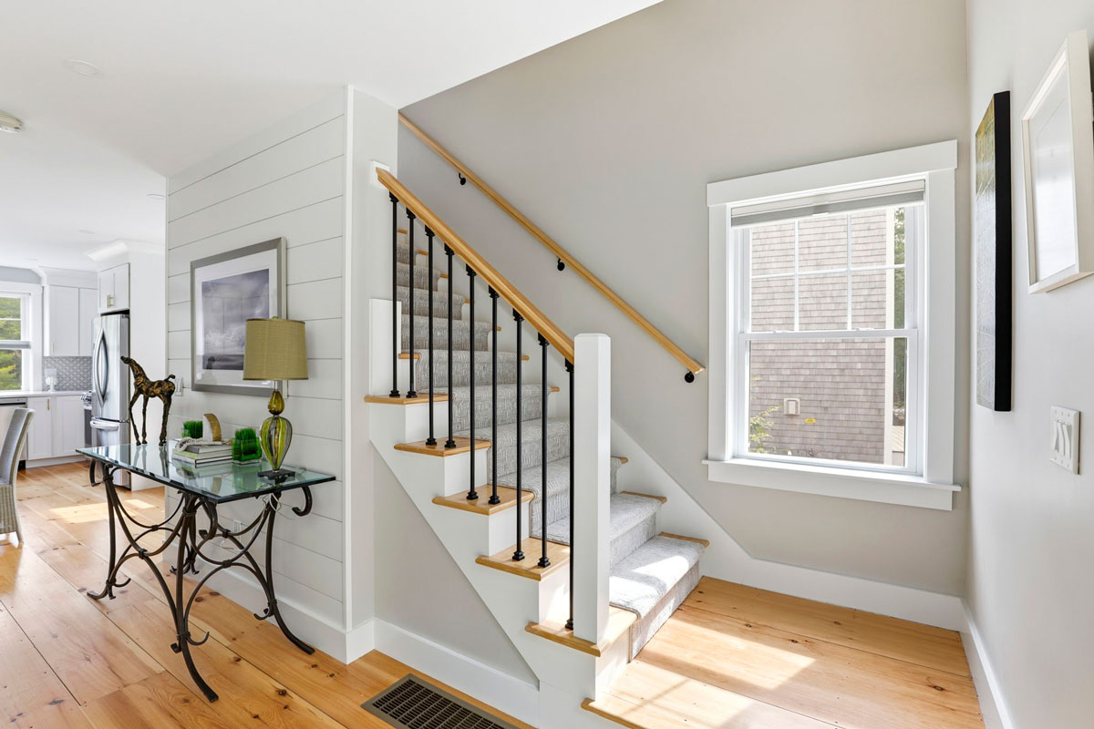 - Sun-drenched interiors where wide pine floors and shiplap accents bathe each room in warmth