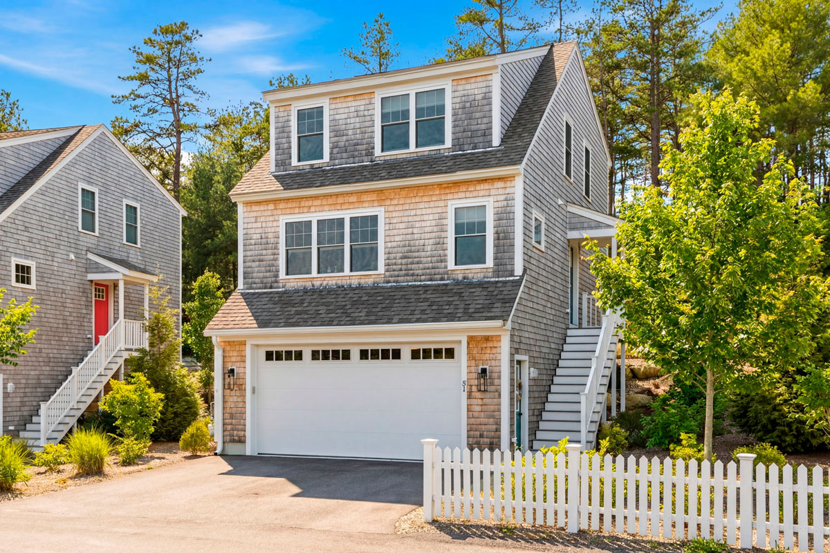 - Nantucket-Inspired Hillside Cottage with spacious two-car garage tucked below