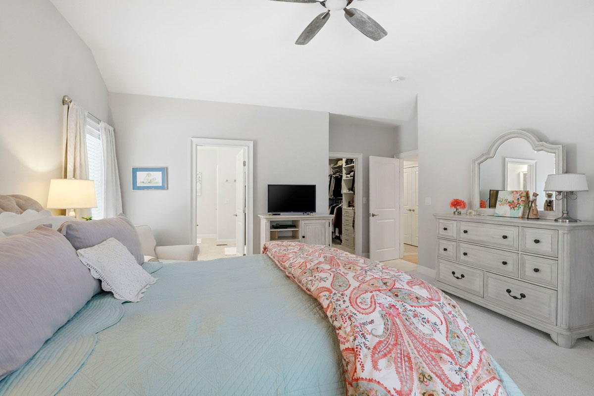 Welcome to The Fern in Redbrook’s sought-after Winterberry neighborhood, where thoughtful design and elevated finishes create a home that’s both stylish and comfortable. Sunlight fills the open-concept main level, seamlessly connecting the kitchen, dining, and living areas — perfect for everyday living and entertaining. The primary suite is a private retreat with vaulted ceilings, a spa-like bath featuring a glass-tiled shower, soaking tub, and a custom walk-in closet.
